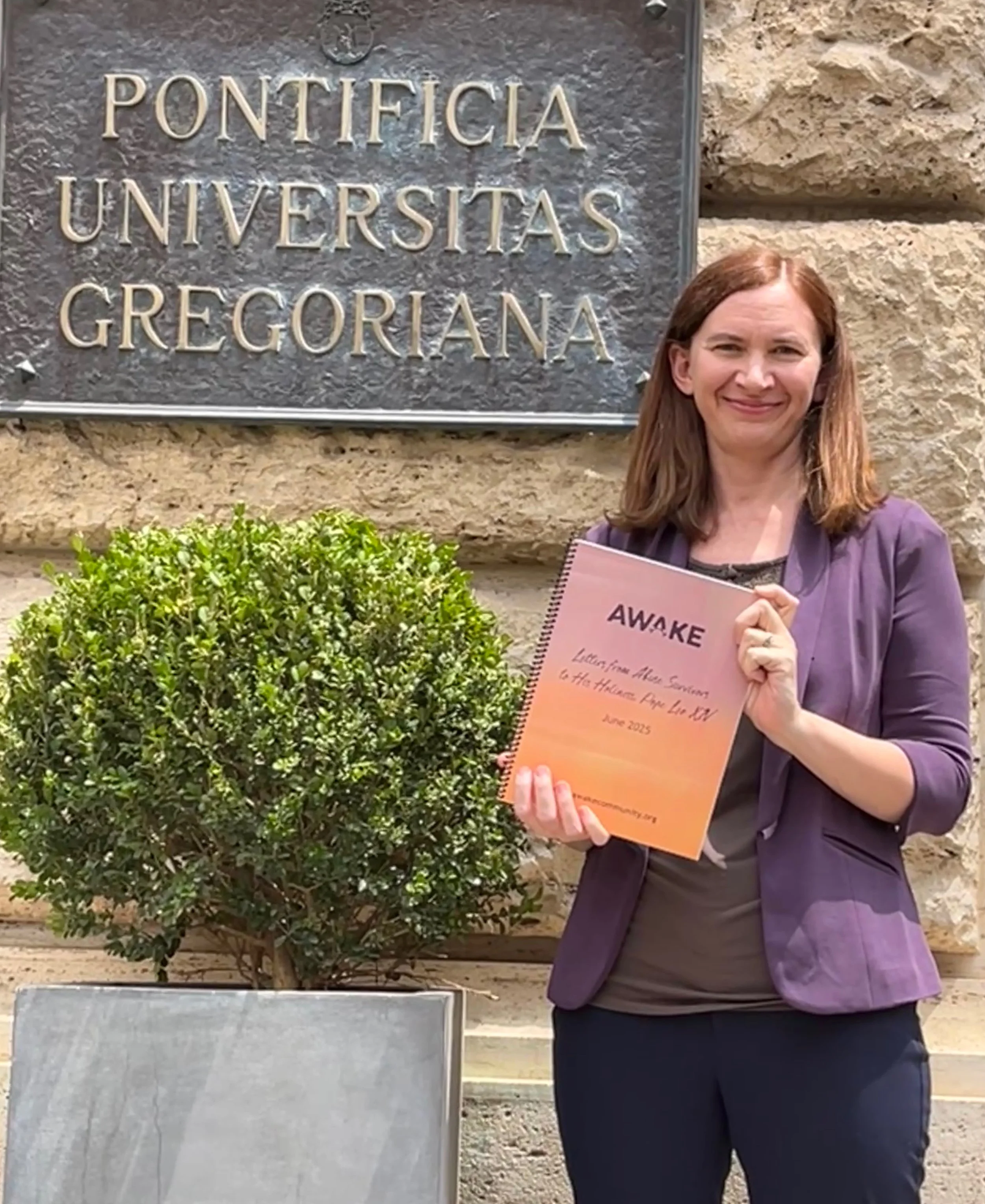 A group of sexual abuse survivors in the Awake community has written deeply personal letters to Pope Leo XIV, describing their experience of harm by Church leaders and their fervent hopes for the Catholic Church. This week, Awake’s Executive Director Sara Larson is carrying this set of 37 letters to the Vatican in Rome, with the goal of ensuring that they are hand-delivered to the new pope.