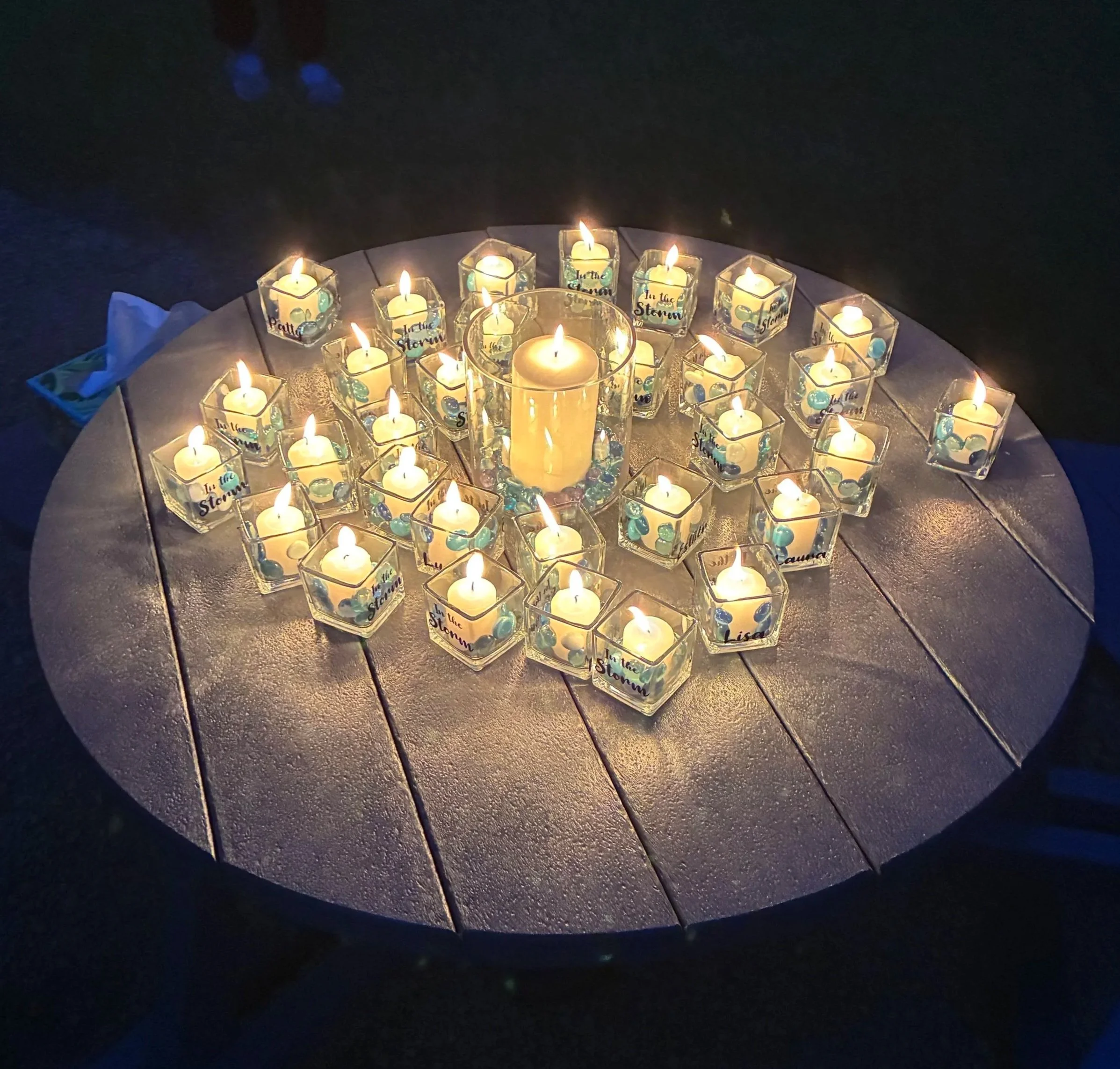 At the end of Friday evening’s prayer service, participants placed their personalized In the Storm candles around the central Christ candle.