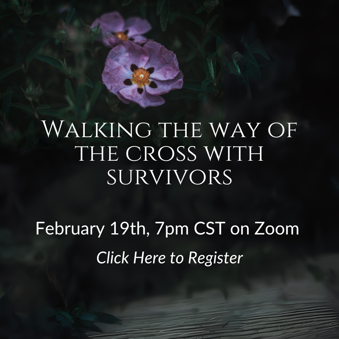 On Monday, February 19 at 7:00pm CST, we'll gather for our annual Walking the Way of the Cross with Survivors on Zoom.